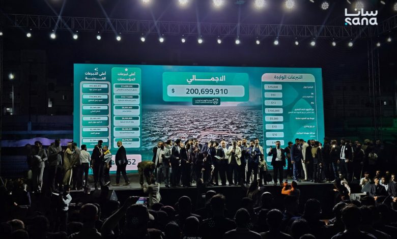 نجحت حملة “الوفاء لإدلب” الإنسانية بجمع 208 ملايين دولار أميركي، في “ليلة إنسانية تاريخية”، كما وصفها القائمون عليها، وذلك بعد ساعات قليلة من إطلاق حفلٍ أقيم في ملعب إدلب البلدي، بحضور رسمي وشعبي وتفاعل إنساني كبير من السوريين في الداخل وجميع أنحاء العالم، لتحطم رقماً قياسياً بين الحملات الشعبية التي انطلقت في المحافظات السورية مؤخراً.