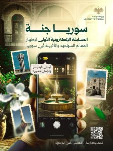 أطلقت وزارة السياحة المسابقة الإلكترونية الأولى، المخصصة لإبراز المعالم السياحية والأثرية في سوريا، وذلك ضمن جهودها المستمرة لتسليط الضوء على التراث الغني للبلاد وتعزيز مكانتها على خريطة السياحة الإقليمية والعالمية.