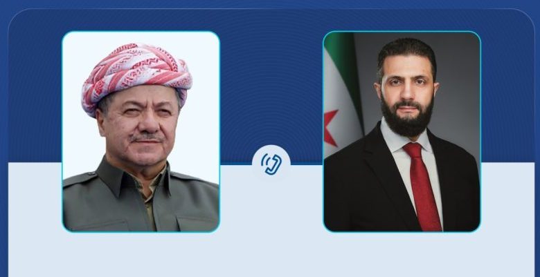 الرئيس الشرع يبحث هاتفياً مع بارزاني التعاون لتنفيذ الاتفاق مع قوات سوريا الديمقراطية