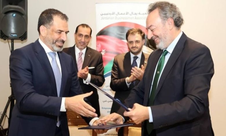 وتهدف الاتفاقية التي وقّعها رئيس جمعية رجال وسيدات الأعمال السورية هيثم جود، ورئيس جمعية رجال الأعمال الأردنيين أيمن العلاونة، إلى تعزيز التعاون الاقتصادي والتجاري والاستثماري بين رجال الأعمال والمستثمرين من الجانبين، وتطوير المشروعات المشتركة في مختلف القطاعات الاقتصادية ذات الاهتمام المشترك.